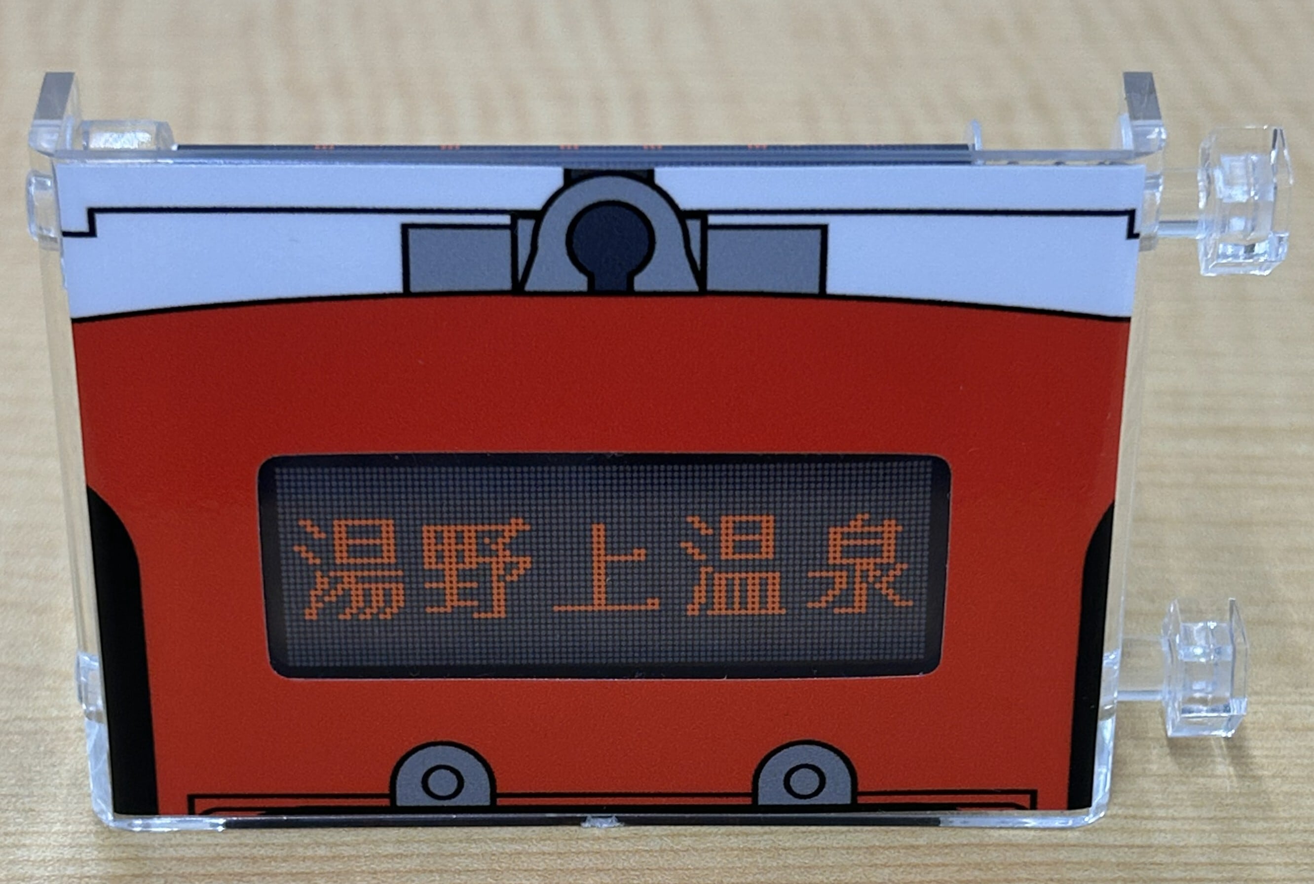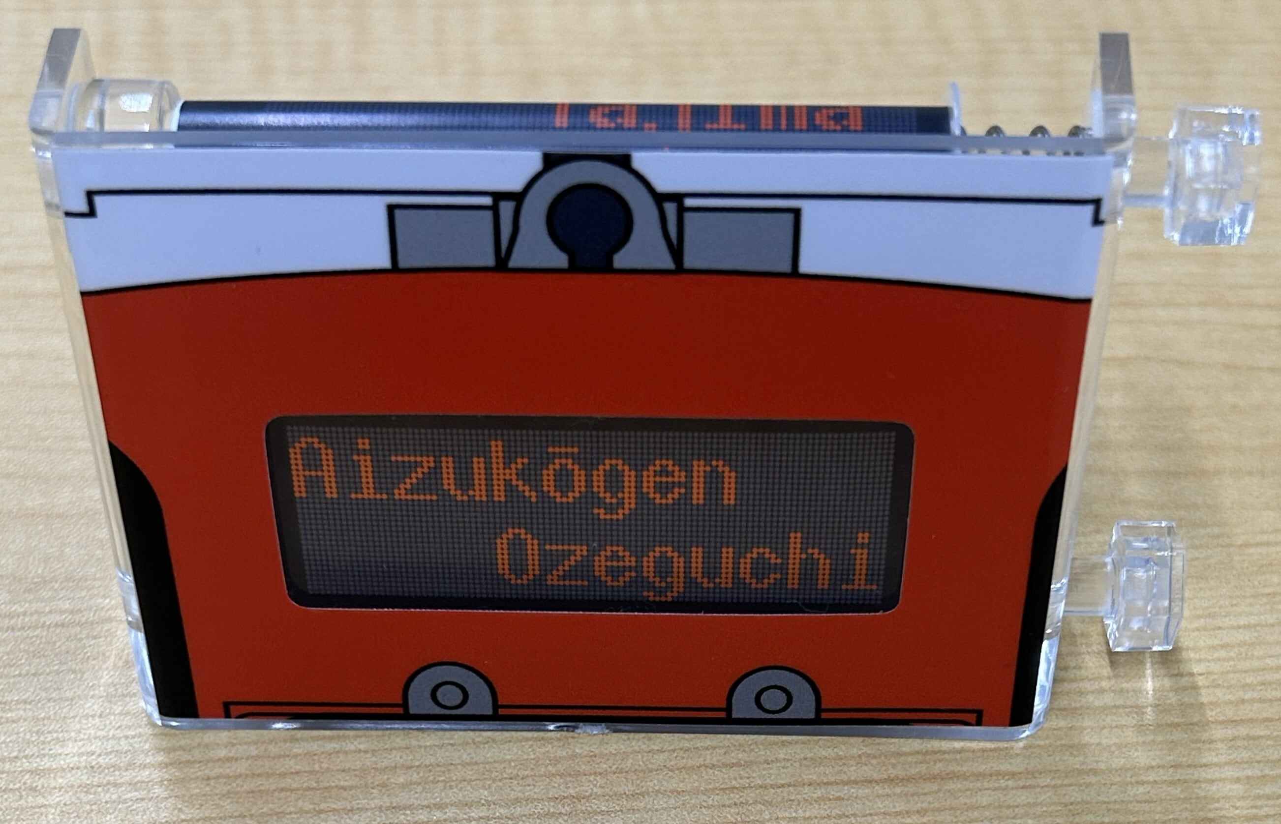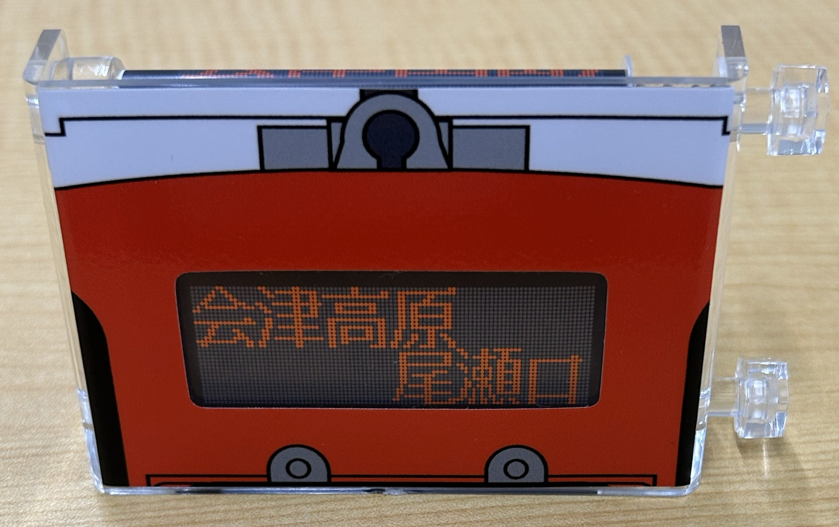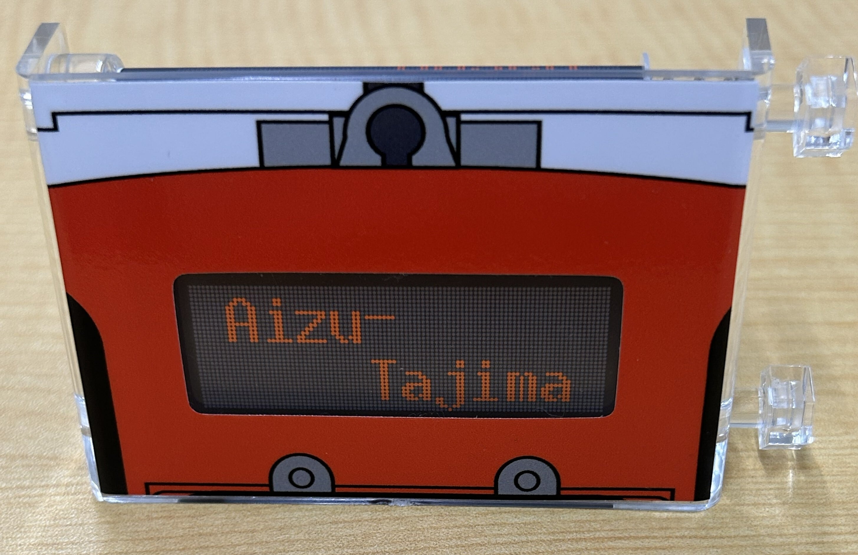 会津鉄道AT-700形 気動車のデジタル行先方向幕を手のひらサイズに再現したミニミニ方向幕です。実物を忠実に再現した16幕を収録しています。つまみを回してお好みの行先を選んでお楽しみいただけます。