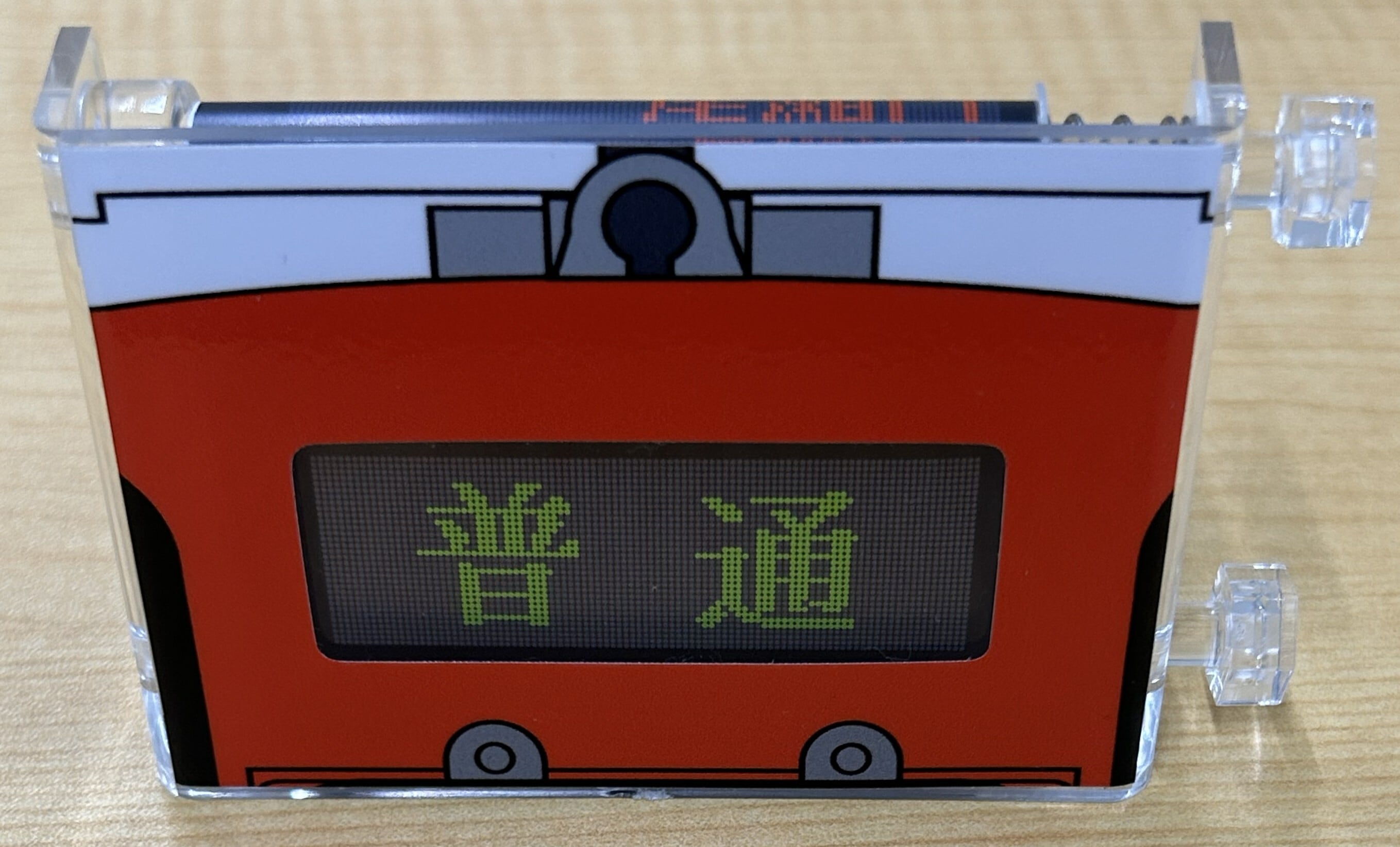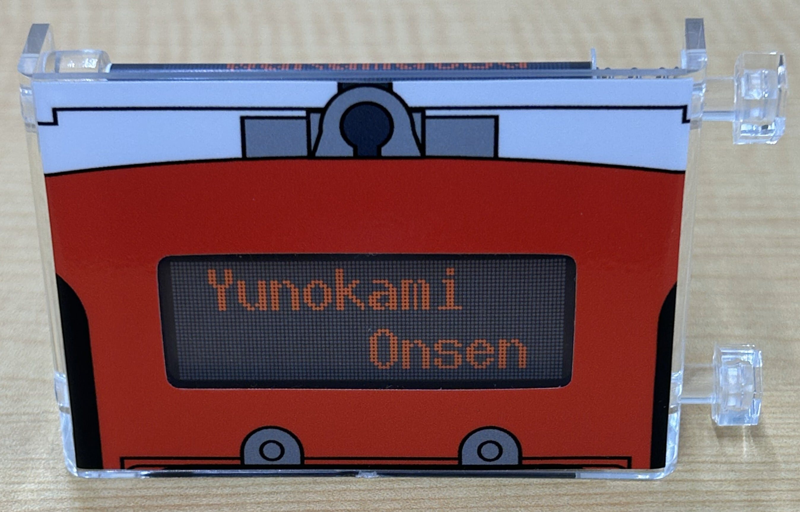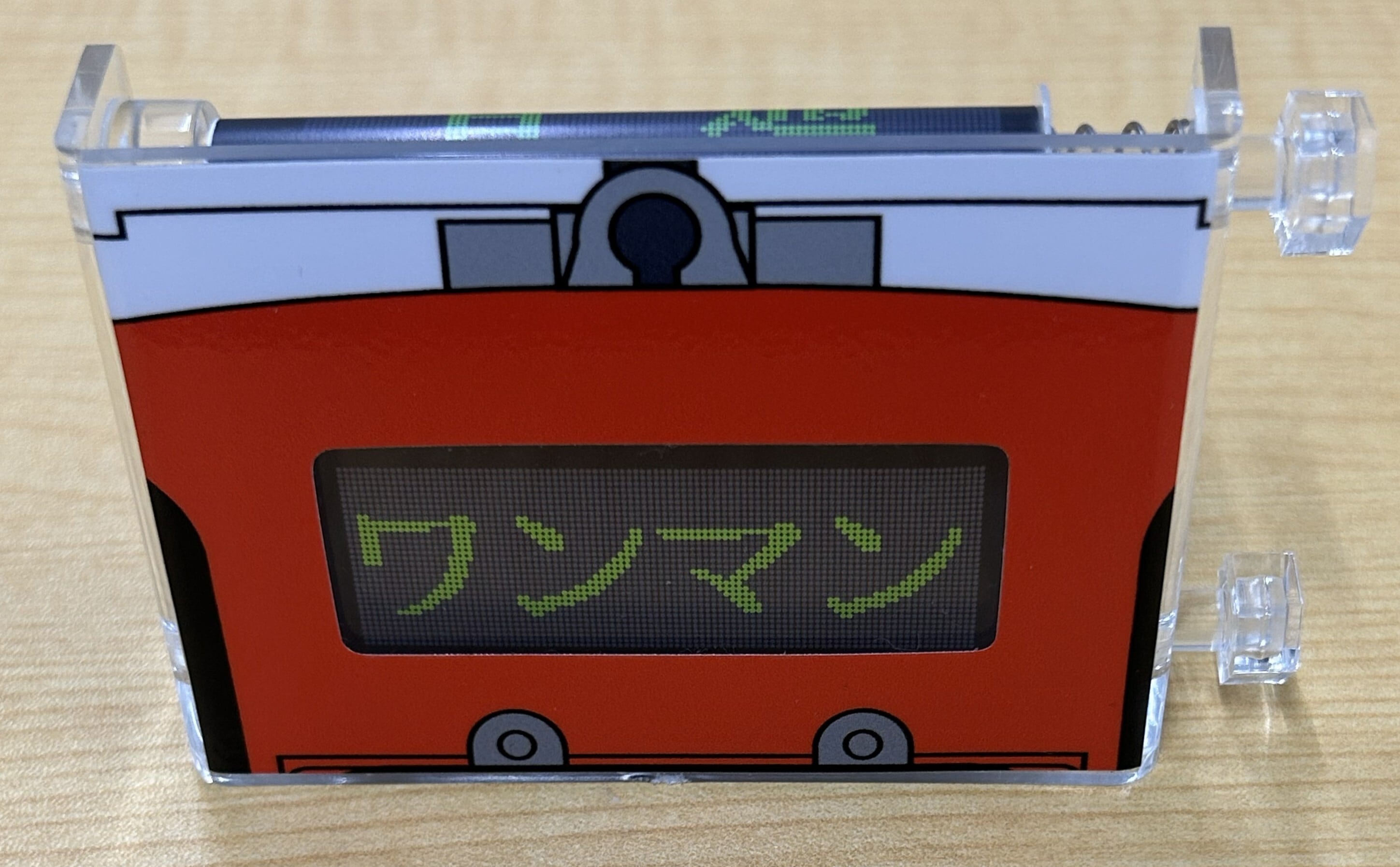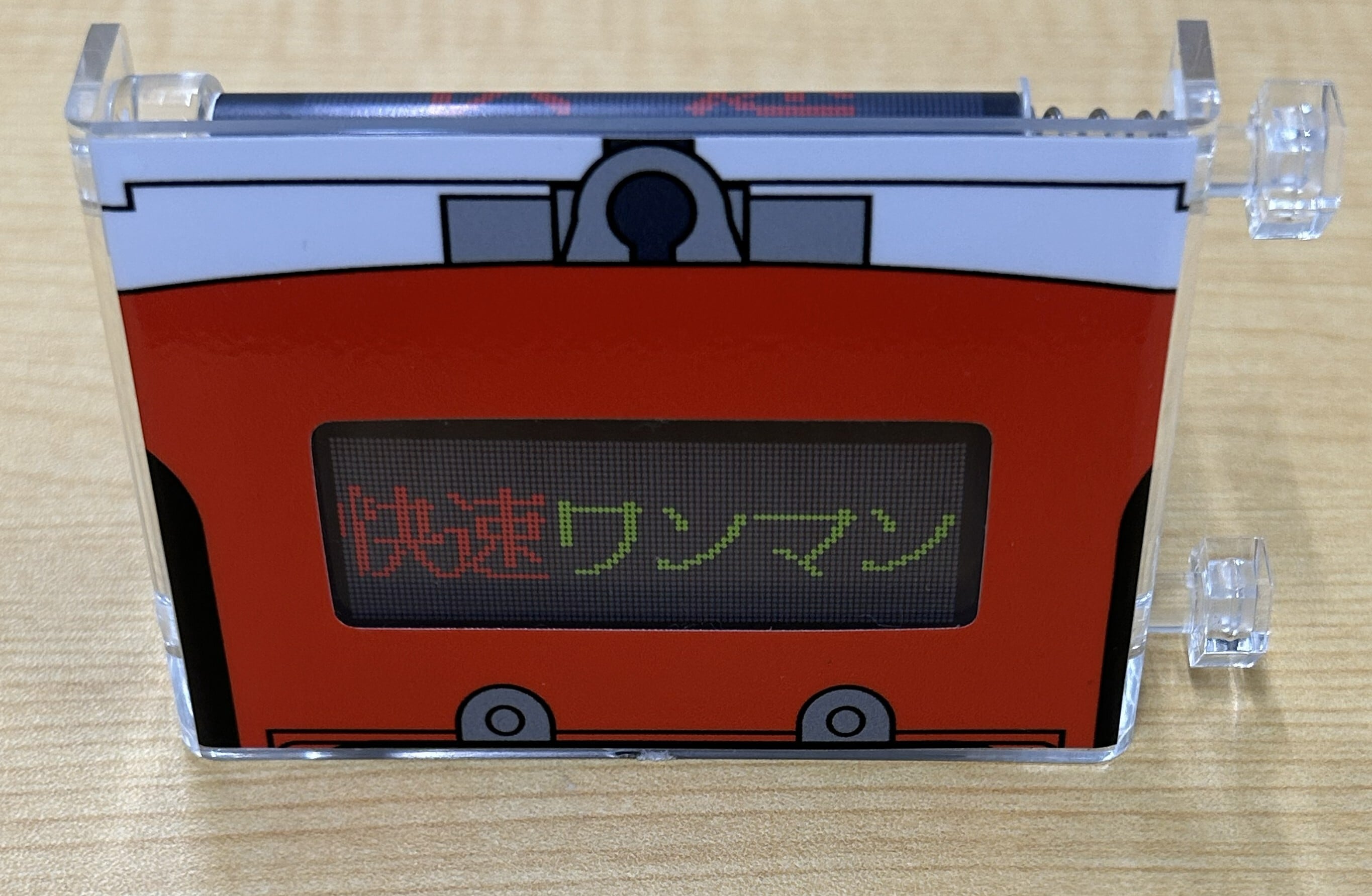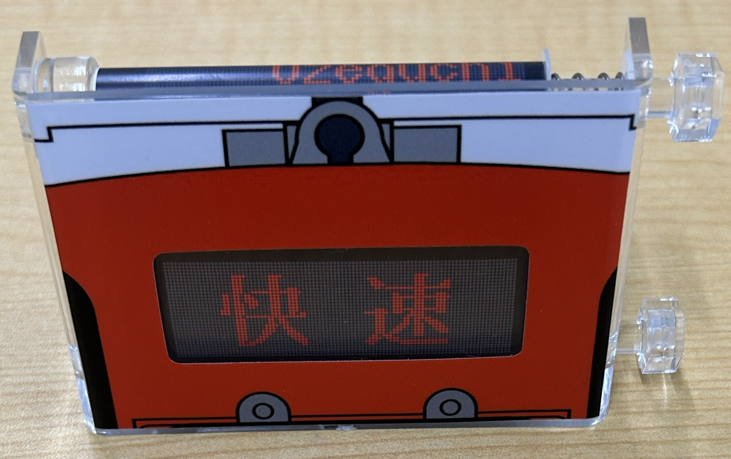 会津鉄道AT-700形 気動車のデジタル行先方向幕を手のひらサイズに再現したミニミニ方向幕です。実物を忠実に再現した16幕を収録しています。つまみを回してお好みの行先を選んでお楽しみいただけます。