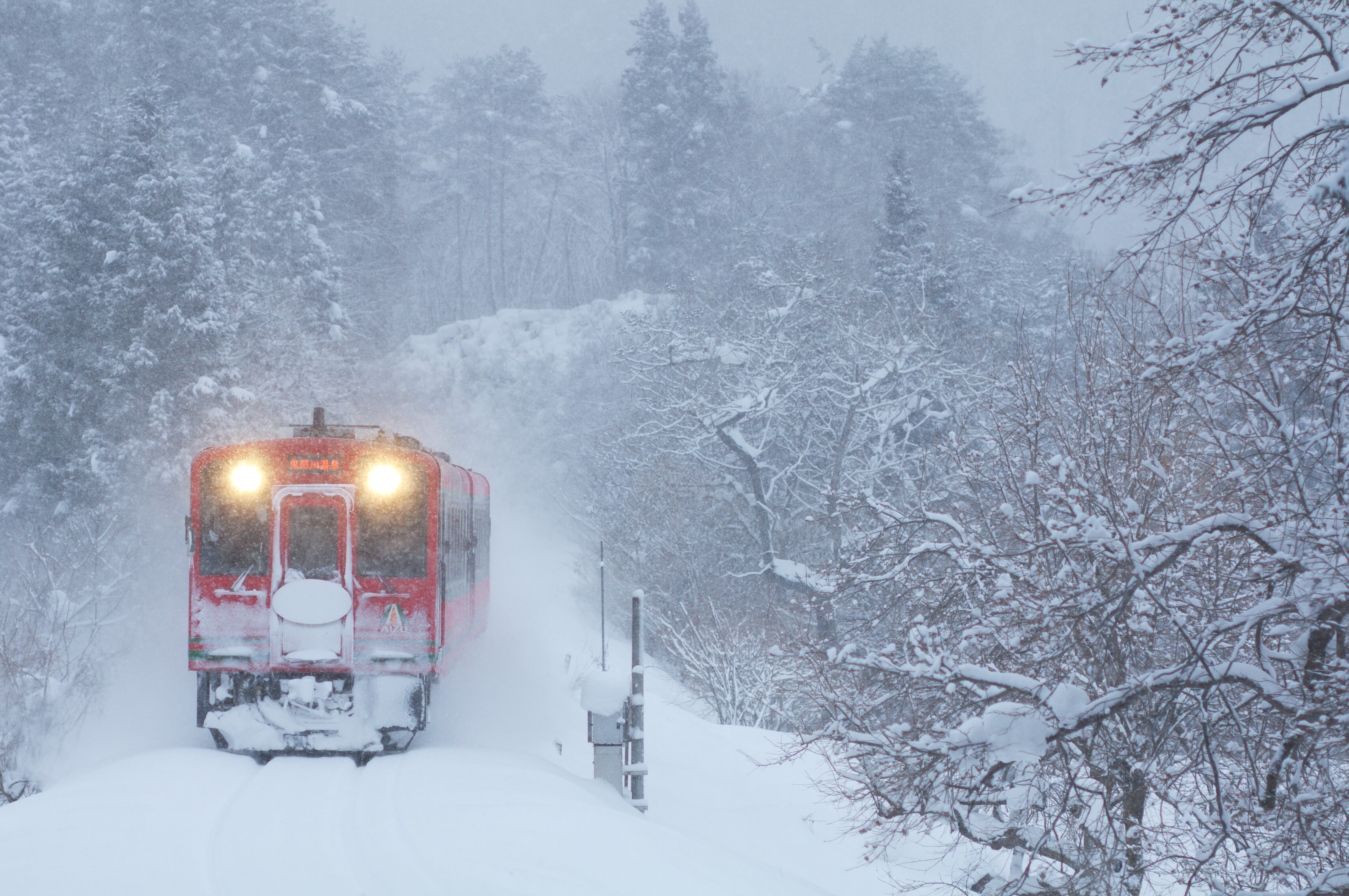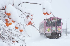 雪景色を走る会津鉄道車両のポストカード3枚セットです。
